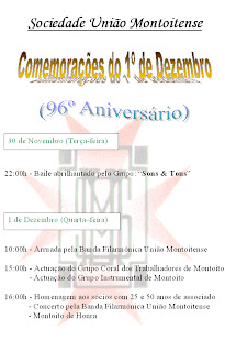 Devido à falta de Listas para a futura Direcção da Sociedade União Montoitense, o Presidente da Assembleia viu-se obrigado a marcar novo acto eleitoral para dia 29 de Janeiro, às 16h (será às 17h caso não estejam presentes metade dos sócios).